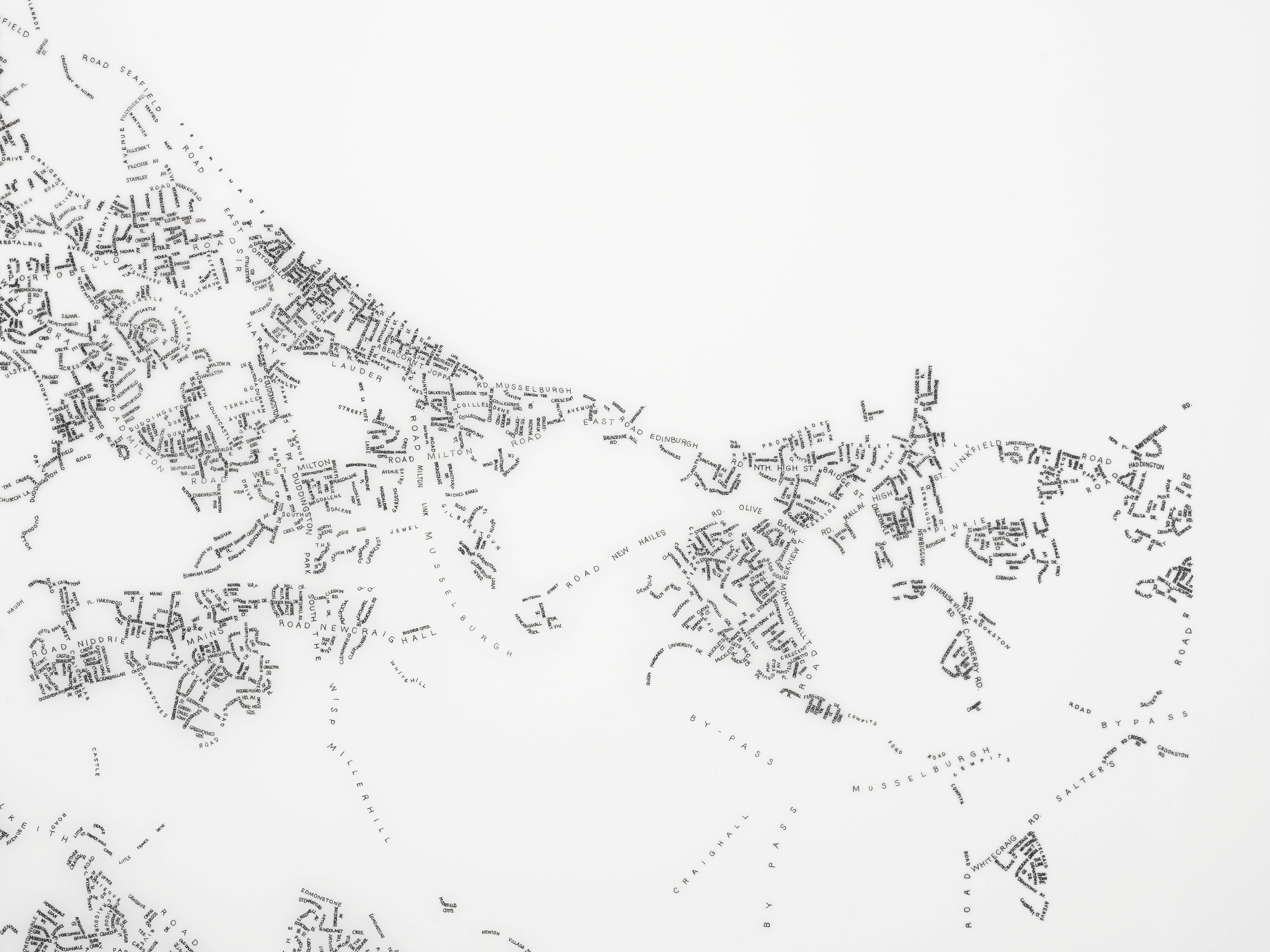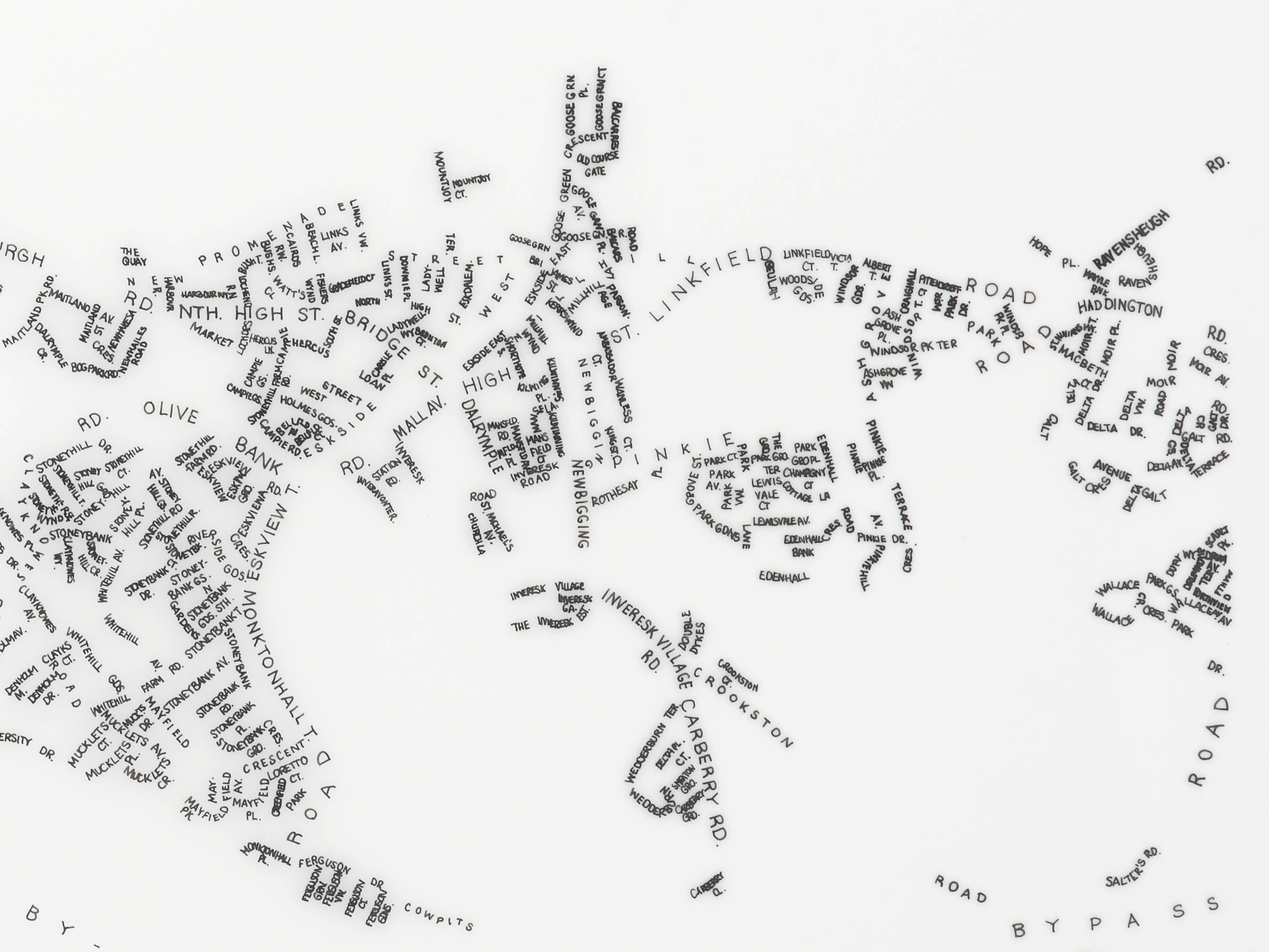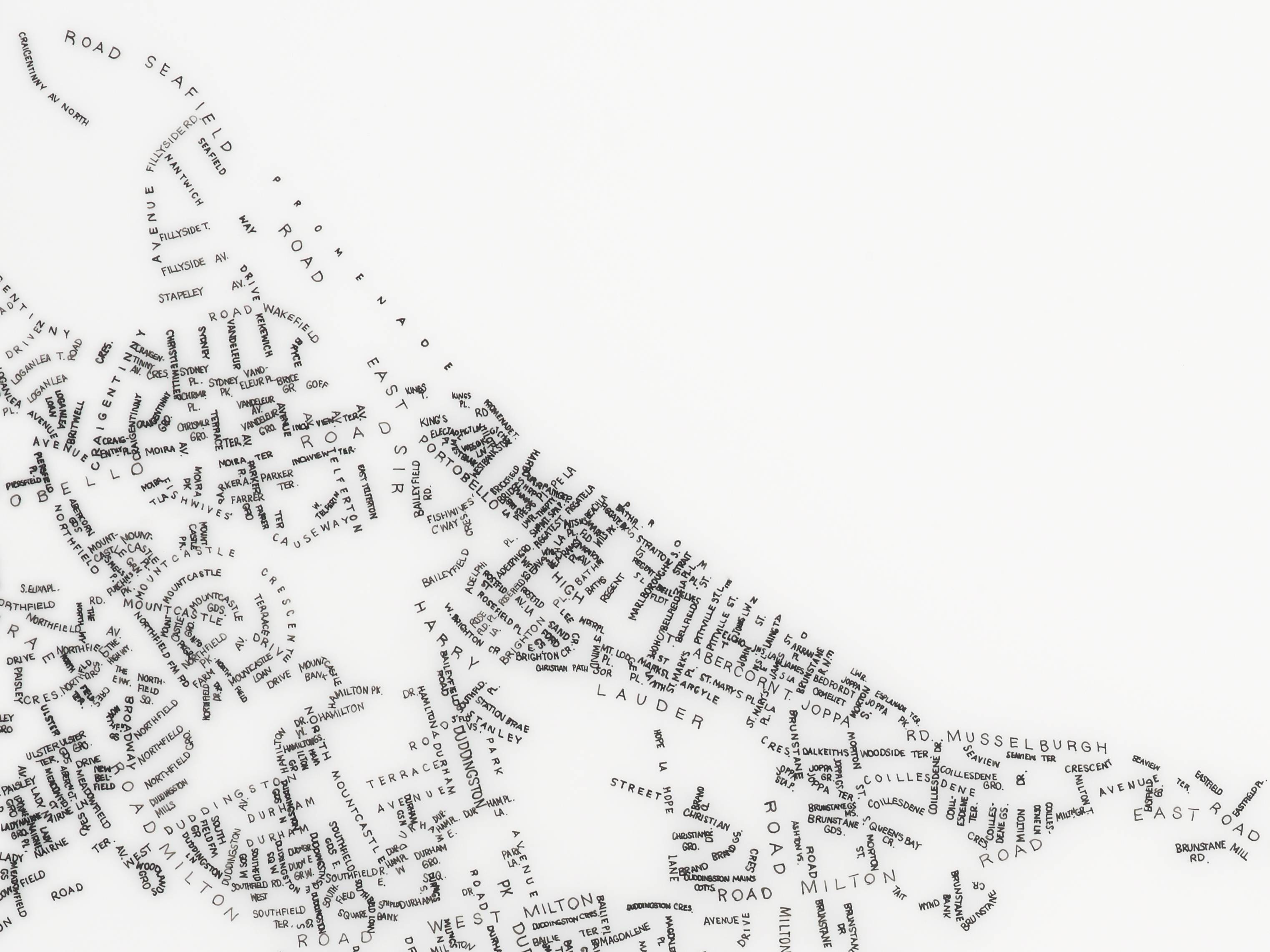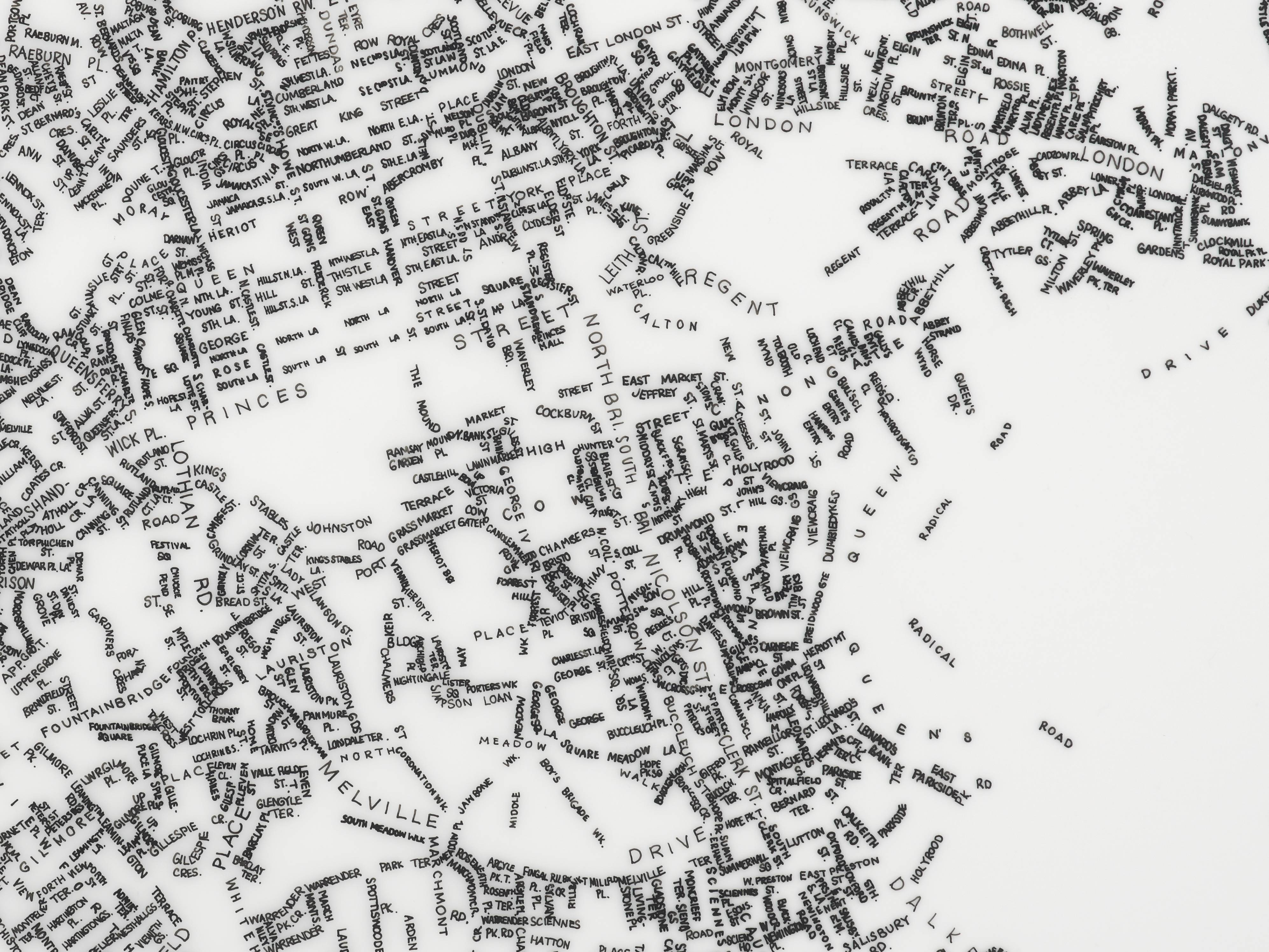 Edinburgh Index Drawing is one of a series of City Index Drawings that use the text from the index of a city map to create a drawing.