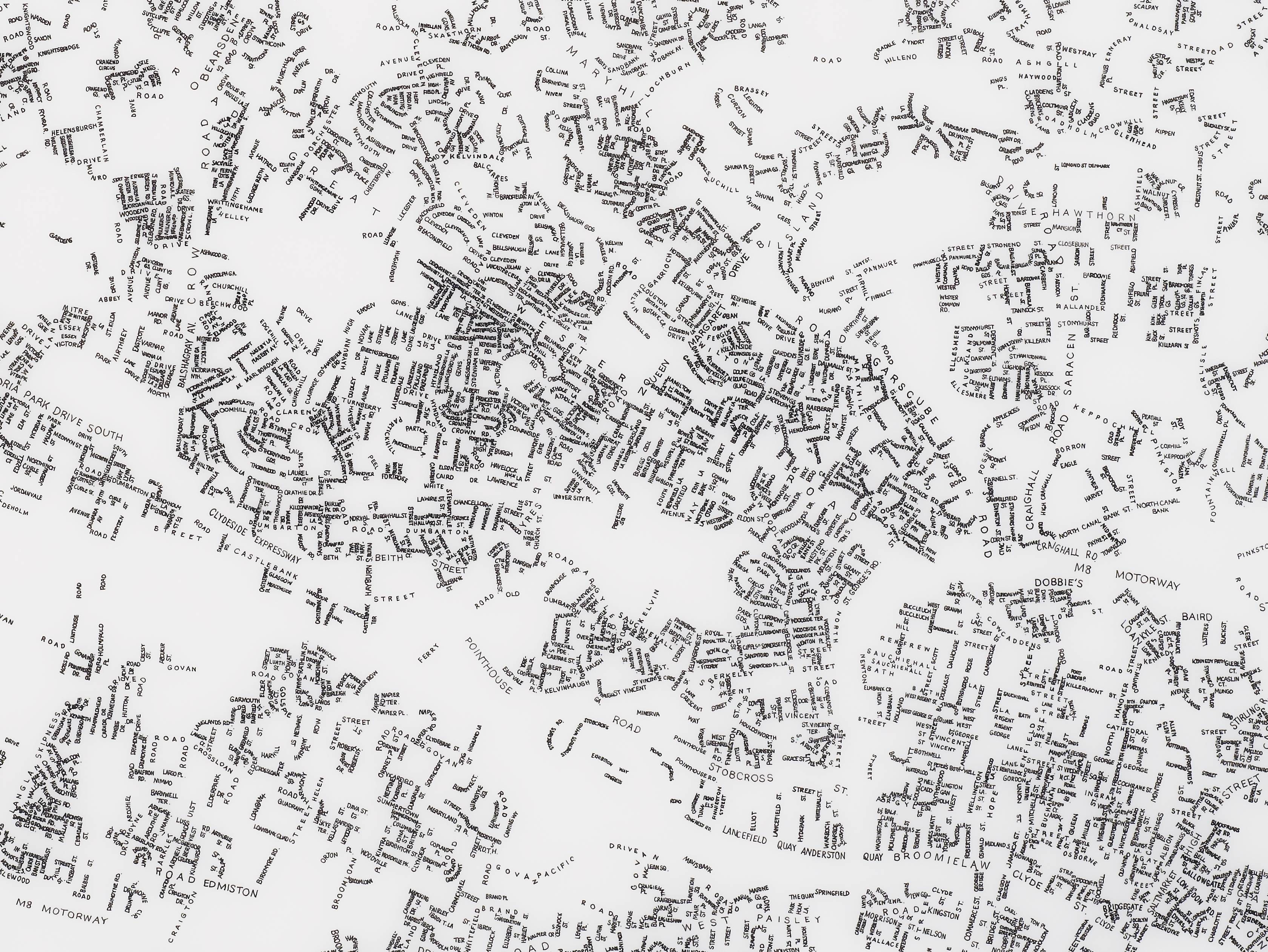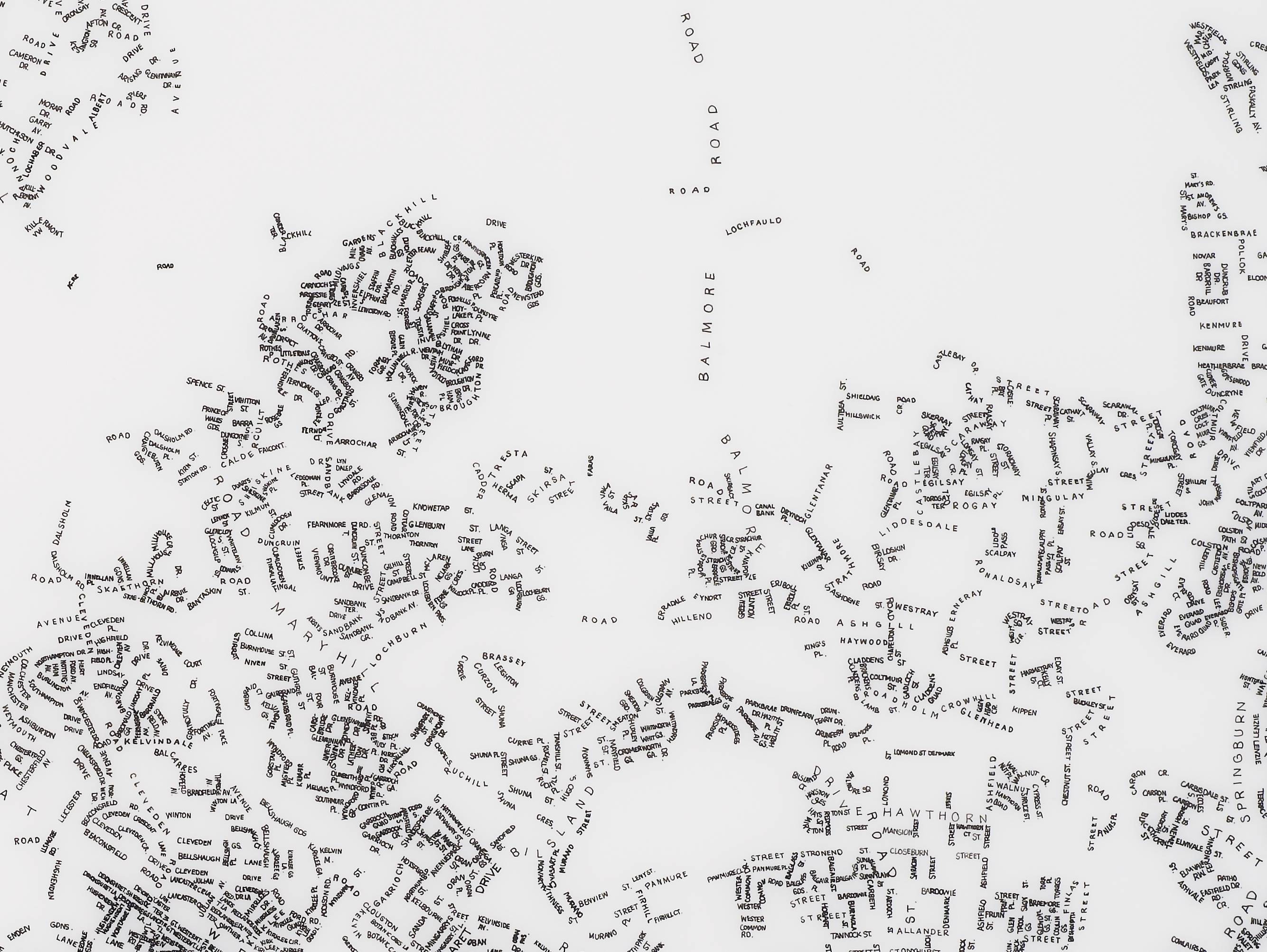 Glasgow Index Drawing is one of a series of City Index Drawings that use the text from the index of a city map to create a drawing.
